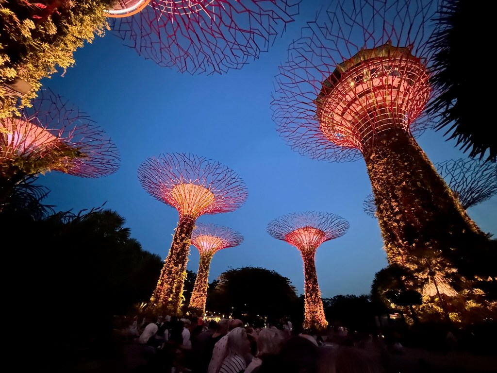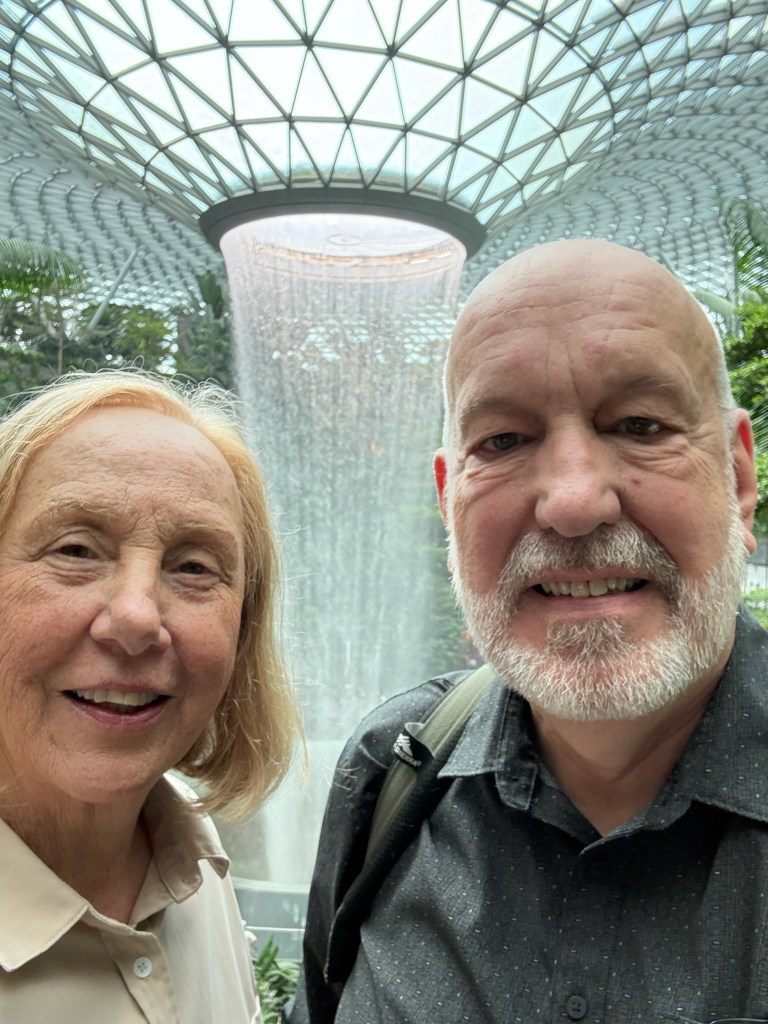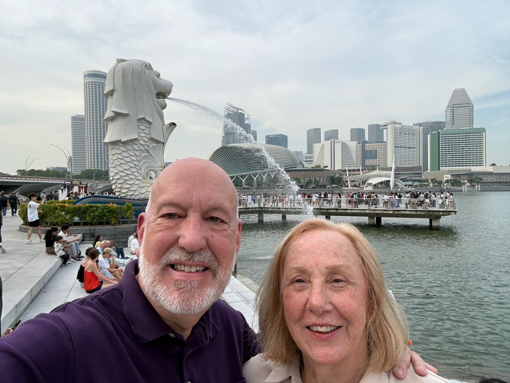 What a fascinating place to visit after braving the longest flight in the world! Lovely people, beautiful varied architecture, public art, impressive gardens, ethnic diversity (Chinese, Malay and Indian), incredible food, extreme cleanliness, safety, health care, housing – really, quite the paradise. But – HOT and HUMID year round. And, the limits on personal expression and freedoms are quite startling to Americans. It doesn’t come across overtly but the undercurrent of conformity and acceptance are the price one pays for economic success and is obviously worth it to the population here of some 6 million. The transition from British colonial rule of 150 years, then starting from nothing after the brutal Japanese WWII occupation to this futuristic Nirvana is unbelievably impressive. The ability to change one’s family’s status through hard work and perseverance over just one to two generations is obvious. We were only here for a short time but enjoyed all of the benefits of this compelling culture that we could possibly cram into two nights and one day, and that went a long way in dispelling jet lag.