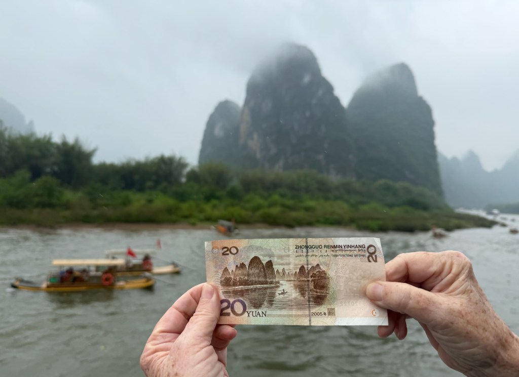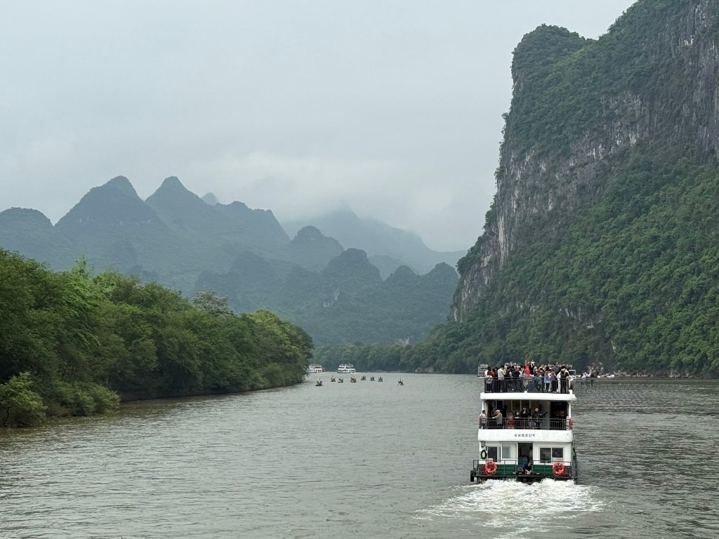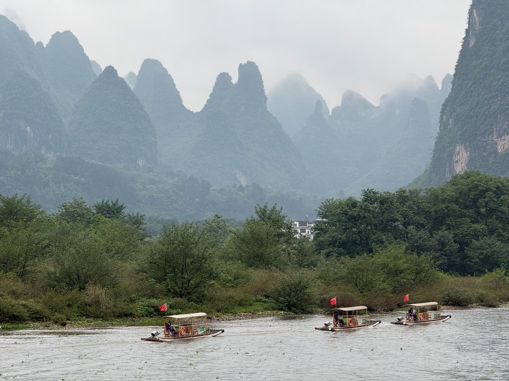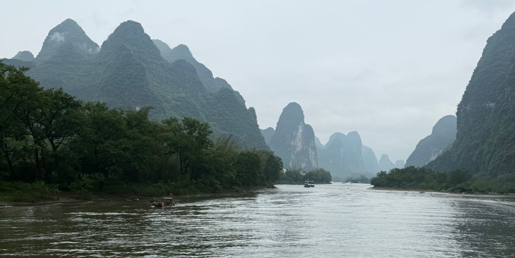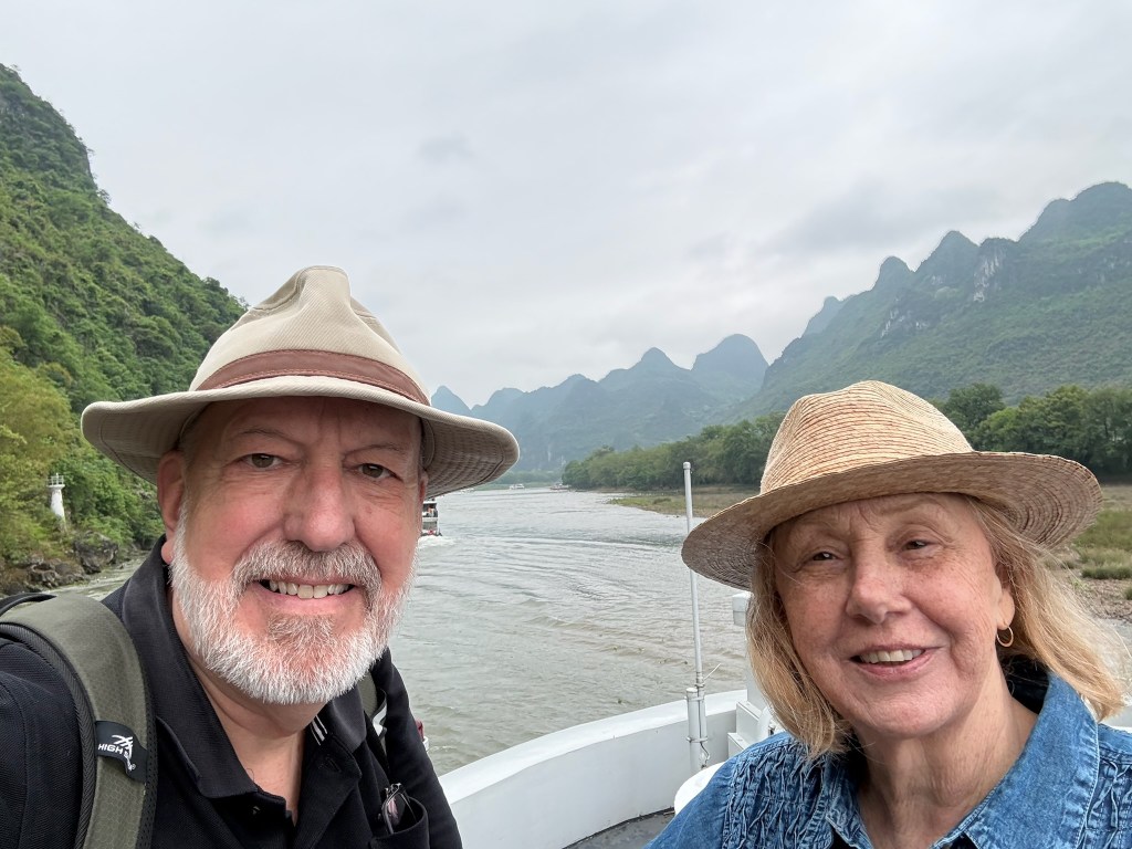 The city of Guilin is a bustling metropolis of some 4 million people to the south of Shanghai surrounded by spiked mountains and laced with winding rivers and lakes. For decades we have dreamed of visiting this Chinese scroll painted landscape and finally getting here, it didn’t disappoint. We boated 4 hours down the Li River basking in the magical, mystical, ever changing vistas composed of limestone karst. They didn’t photograph quite as well as they look to the eye because it was an overcast day but believe me, it was stunning nonetheless.