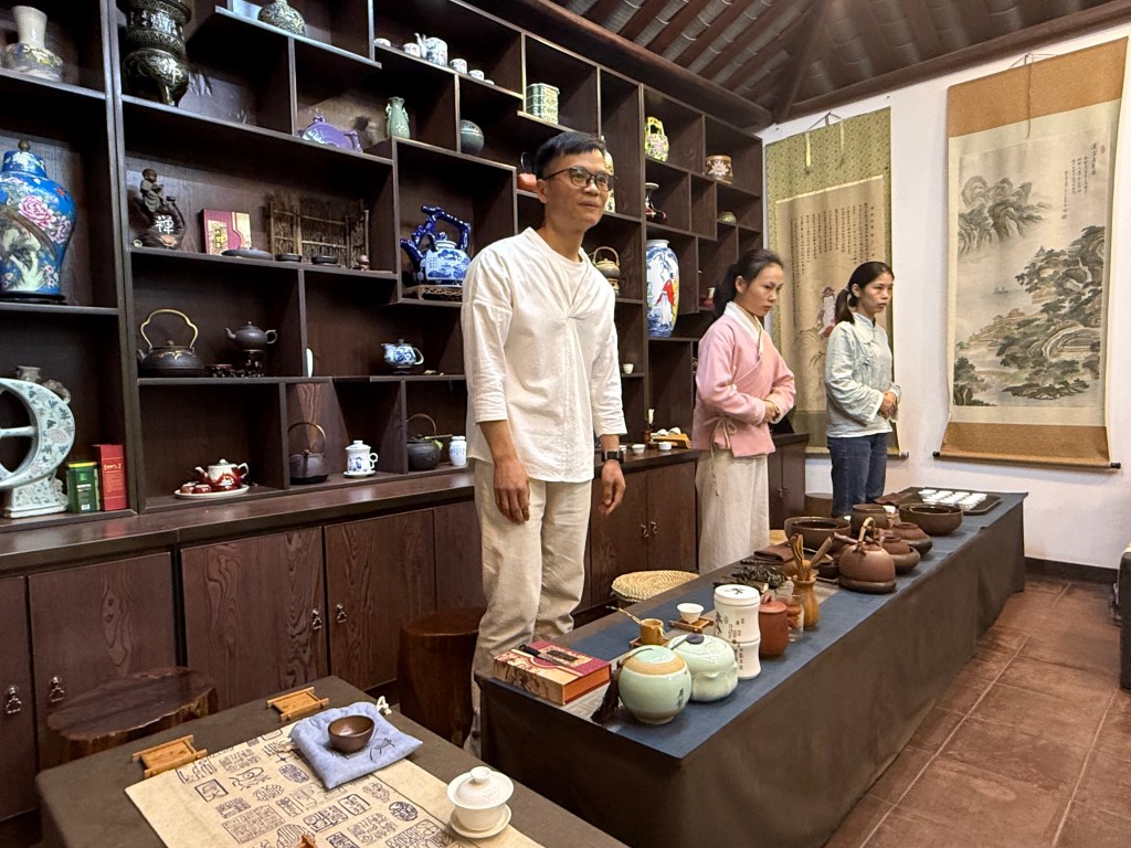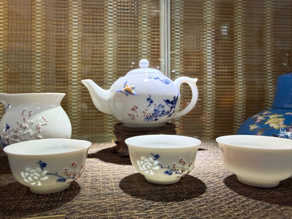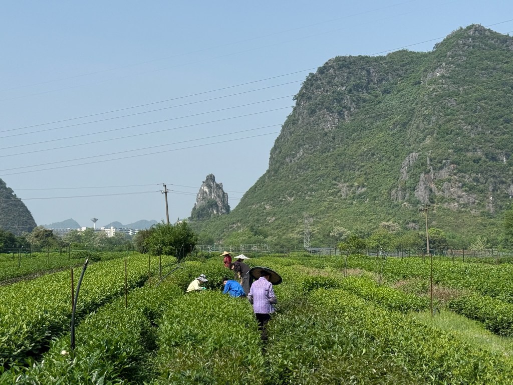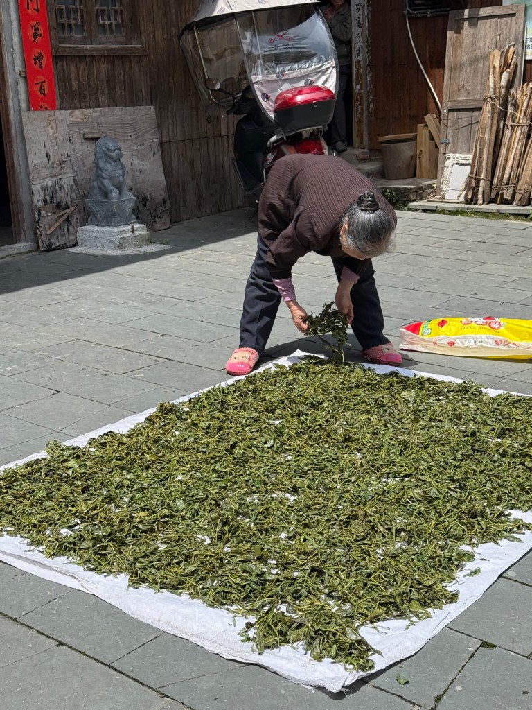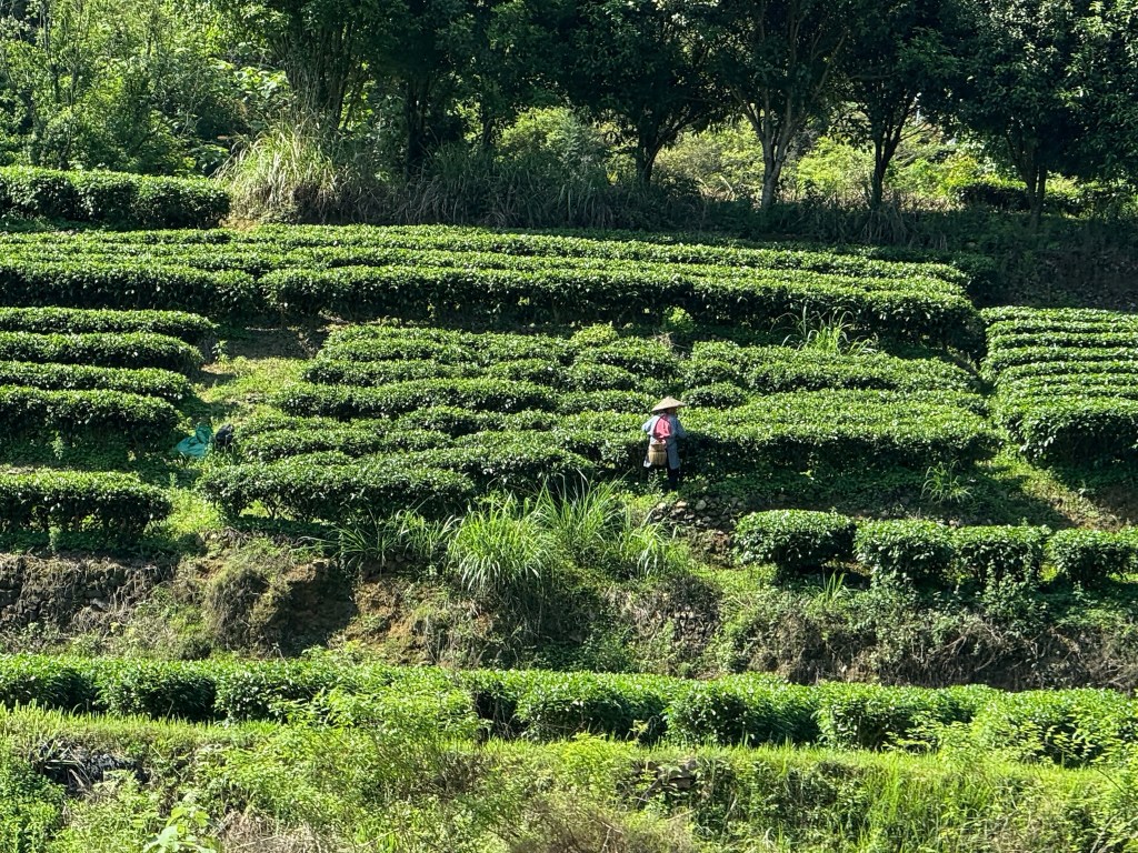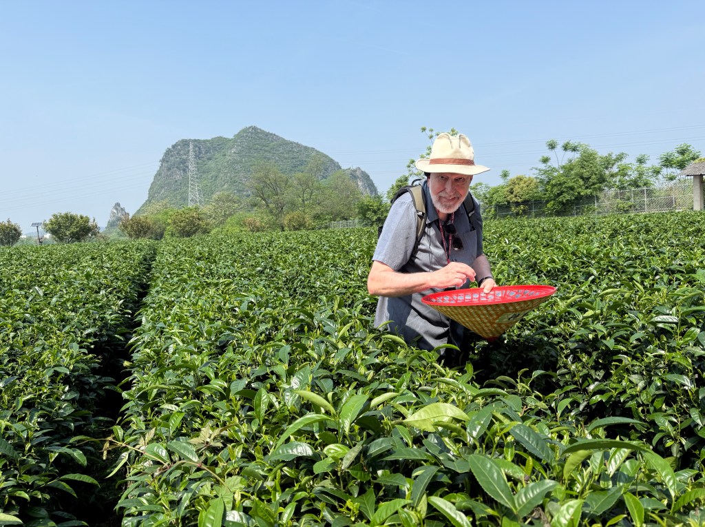 Next we visited a tea research center and learned many things we never knew about this most essential of Chinese beverages. Most importantly: all tea comes from different parts of the same bush! When and from what part of the plant it is picked and how it is treated makes it Green, White, Oolong, etc. The tea master started us all out in the fields picking the delicate top bud and leaf pairs to gain appreciation of the growing and processing required.