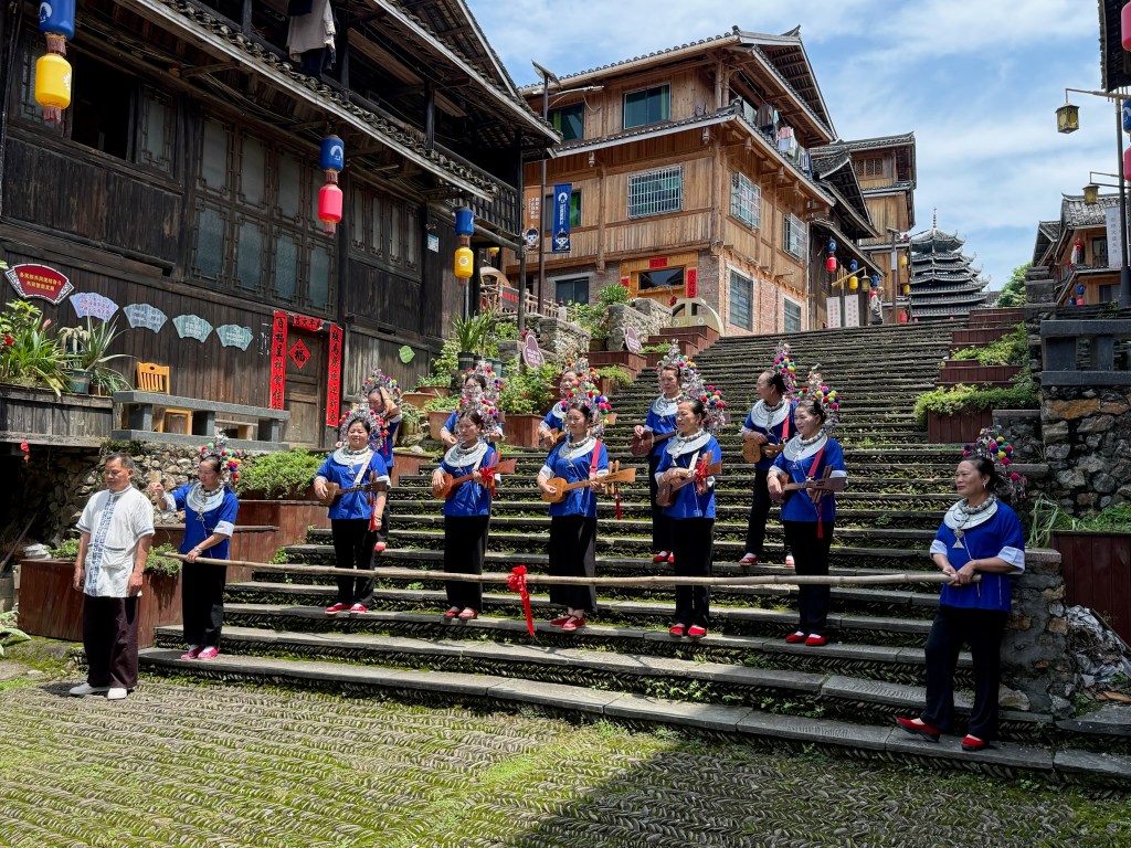 We next spent a day in the life of a remote Dong Village. The Dong people are one of the five protected ethnic groups in China living in an Autonomous Region. They have mortise and tenon building traditions, unique food, language, mating rituals and genetics. Of all the Chinese, their ethnicity is centered most around music and drumming. We found the village folks to be gracious and welcoming. They sang, played homemade stringed and bamboo flute instruments, shared stories and made us an amazing banquet of 30 different homemade dishes, just for lunch! Traditionally here, one circles the table sampling from each dish into your bowl before sitting down to eat.
