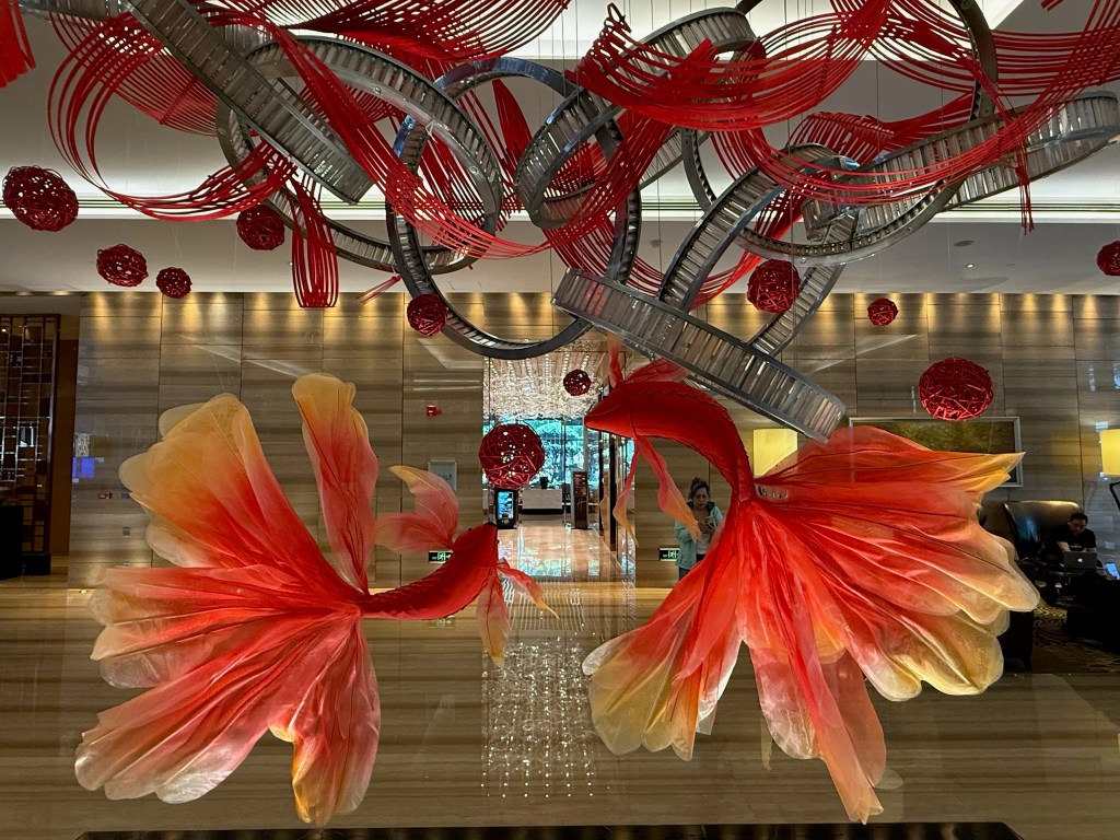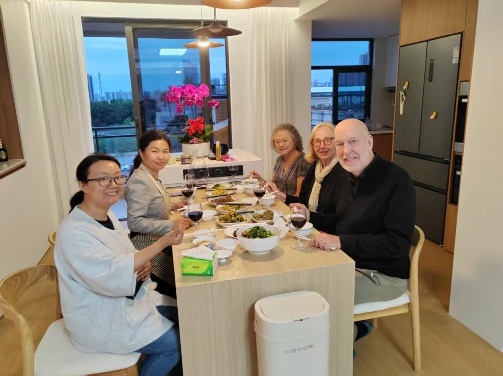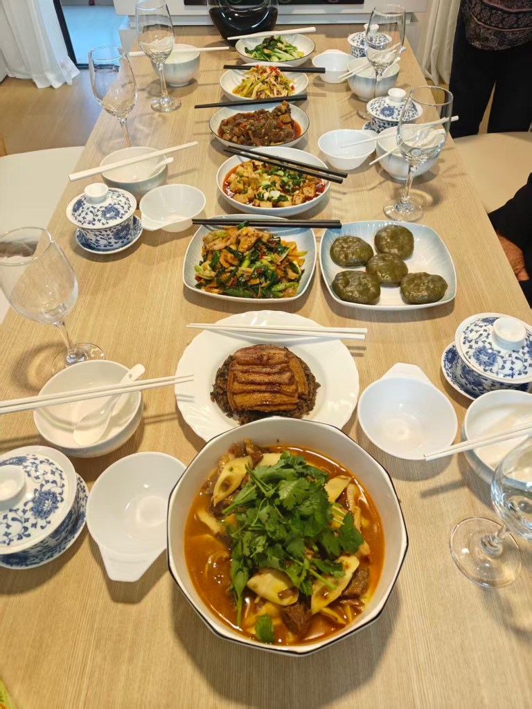 That night we were taxied out some 65 minutes to a city outskirt for an evening with a Chengdu couple for dinner in their home. Fascinating! While we glimpse headlines of our US leadership referring to Chinese immigrants to America as coming form “hellholes”, nothing could be further form the truth. We spent some 4 hours with a 40 something couple who cooked up an incredible meal for us in their ultra modern 1100 sq ft apartment and found that we had much more in common than not. They surprisingly are able to retain an apartment closer into the city for their child to study and a country spot for more tranquility some twenty minutes further out, an enviable lifestyle for anyone in this day and age. She is a travel consultant and he is a tax accountant. They live in a Manhattan like 6 story apartment complex amidst a myriad of 25-30 story high-rises. All the locals were out for their evening stroll, checking out their community garden plots and curious to chat with us. We talked about how no one minds the relatively recent 5-10 year ubiquitous presence of surveillance cameras here because everything is clean, safe and ever improving for most everyone’s lifestyle. But they couldn’t resist asking WTF is up with our leader ”as he changes opinions and policy as much as he changes clothes.”
